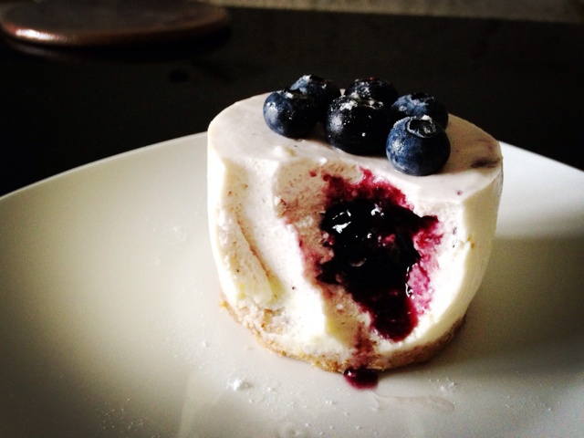 做了两个三寸的,中间加了蓝莓果酱,加了果酱感觉腻了点。还是烤过的芝士好吃。