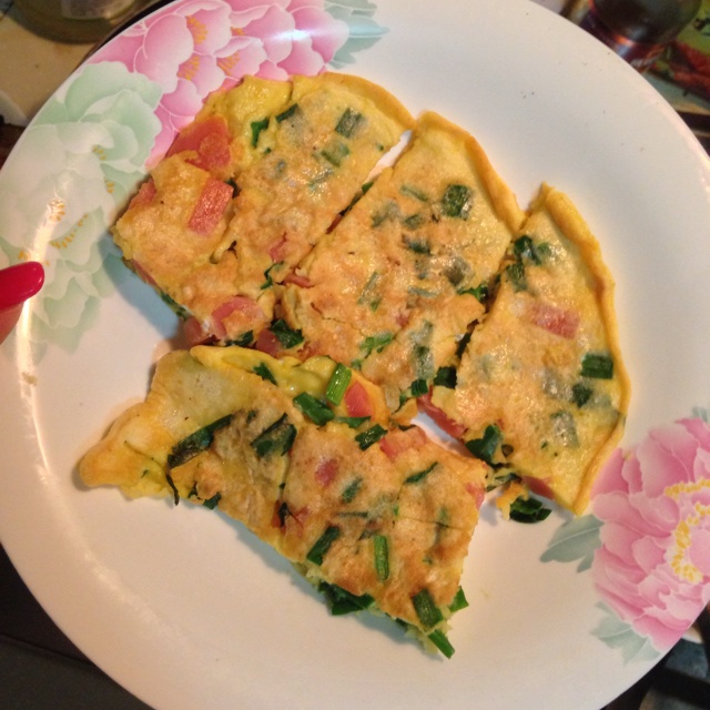 早上方丈做的,加了三个土鸡蛋,没葱花。做出来有点硬,水放少了!