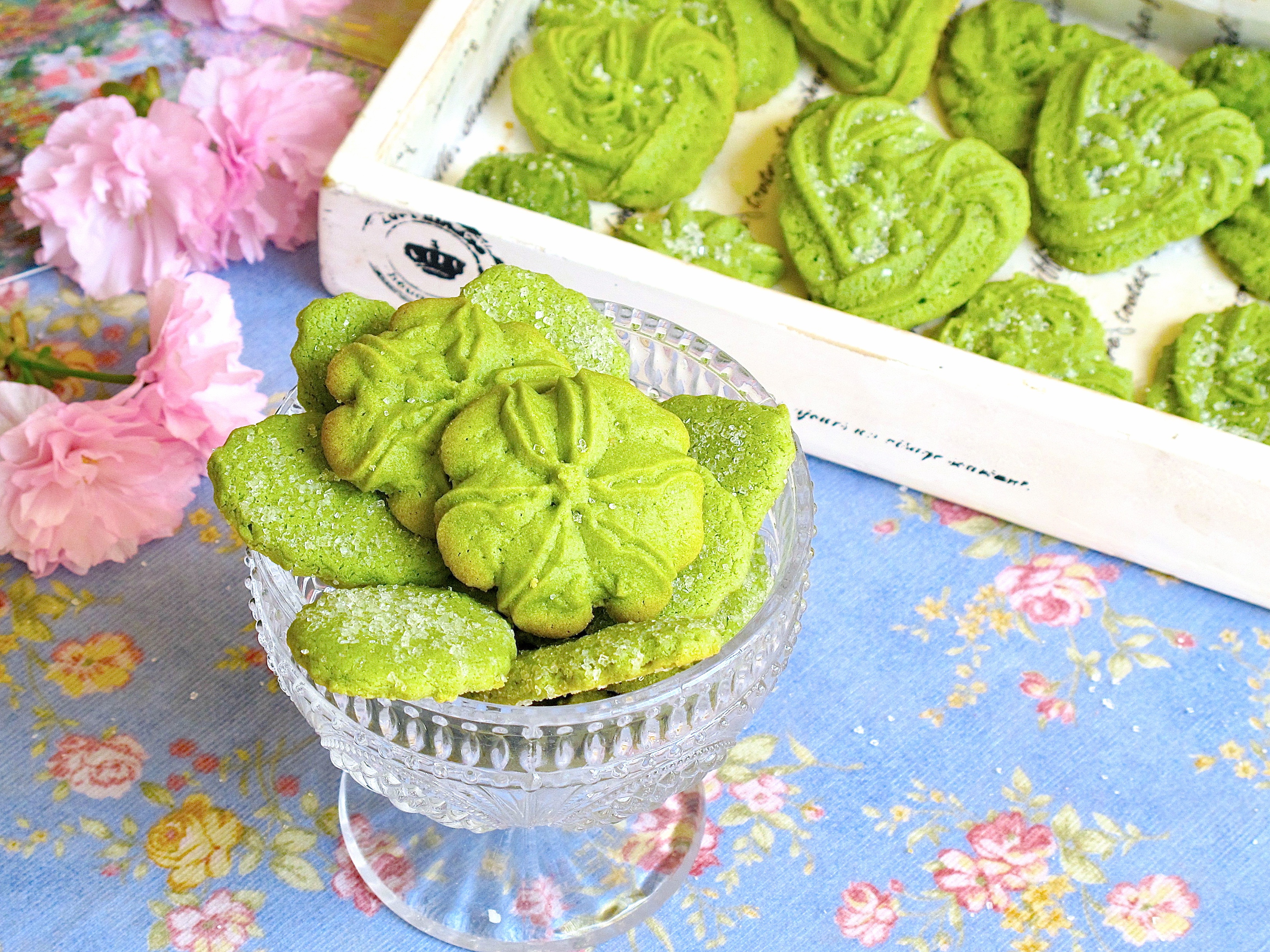 极少极少用裱花袋挤曲奇,还蛮好玩的说,试了抹茶的,春天的颜色~~花纹貌似是很清晰,也比较好挤,缺点是不够酥呢,下次试试别...