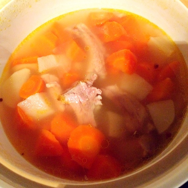 胡萝卜+白萝卜排骨汤,淡淡的甜
