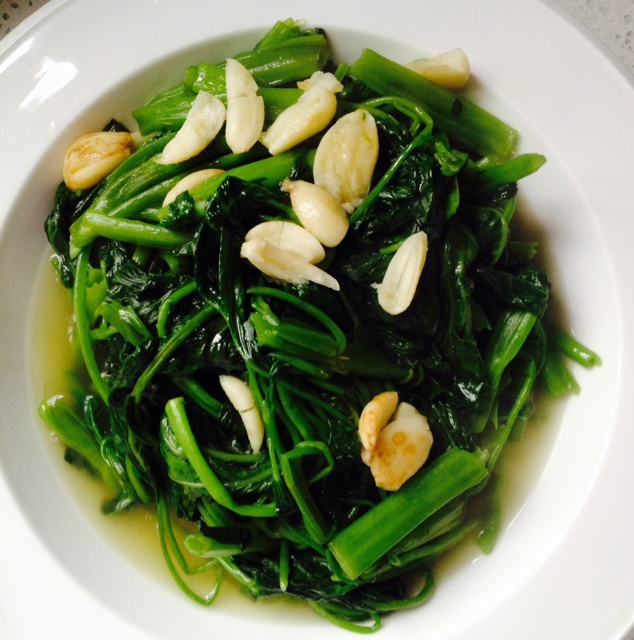 蒜蓉菜心炒鸡肉片。很香的蒜香味。
