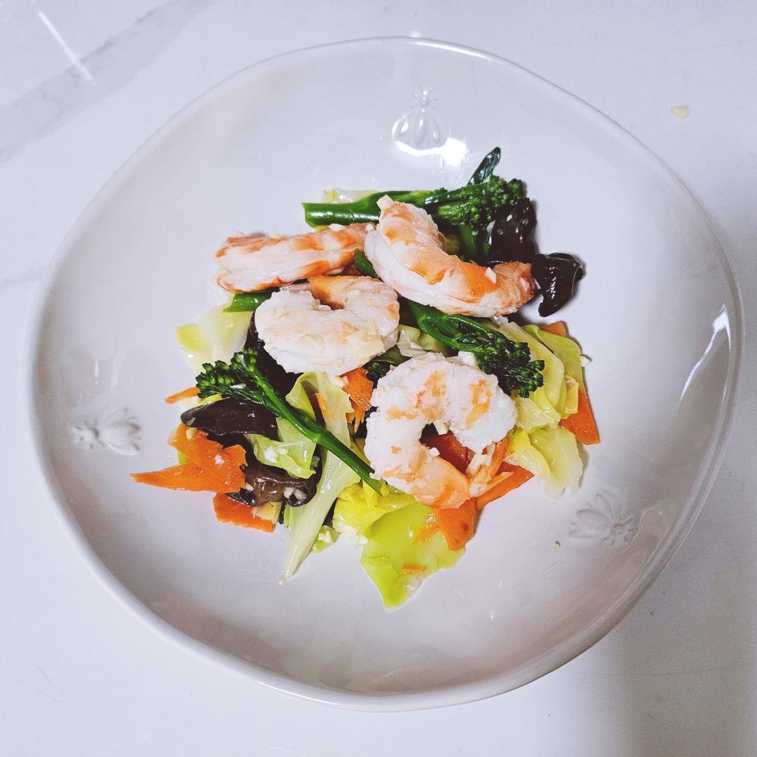 清爽减脂餐の凉拌虾仁包菜