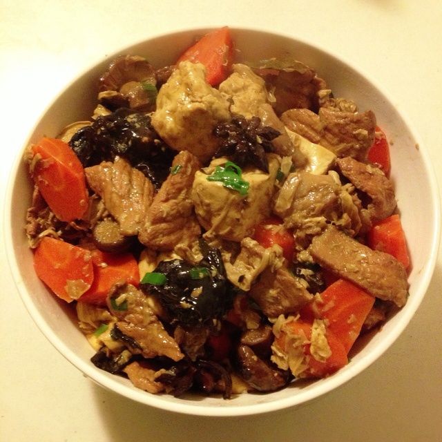 还加了豆腐花菇回过神来发现做成了大乱炖不过带便当的话这样一份菜就荤素豆制品菌菇都齐惹