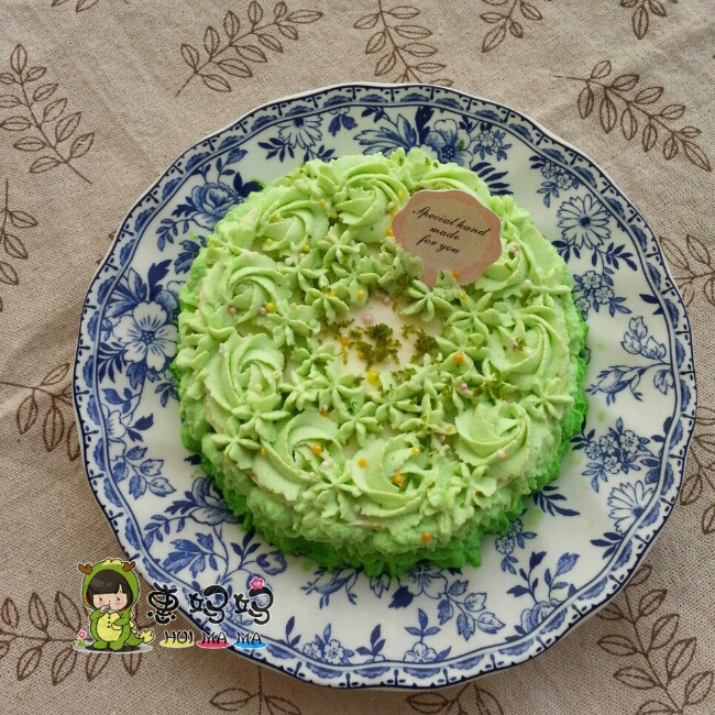 召唤神龙之绿色!这个是刚才的青柠冻芝士蛋糕裱花而成的,绿色还不错看!*^_...