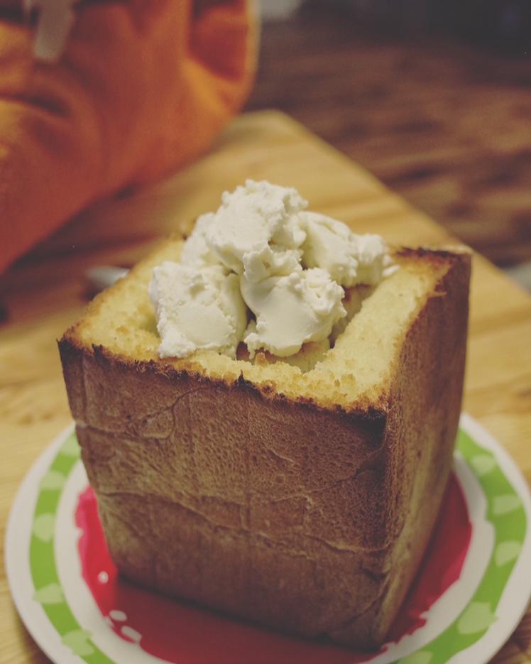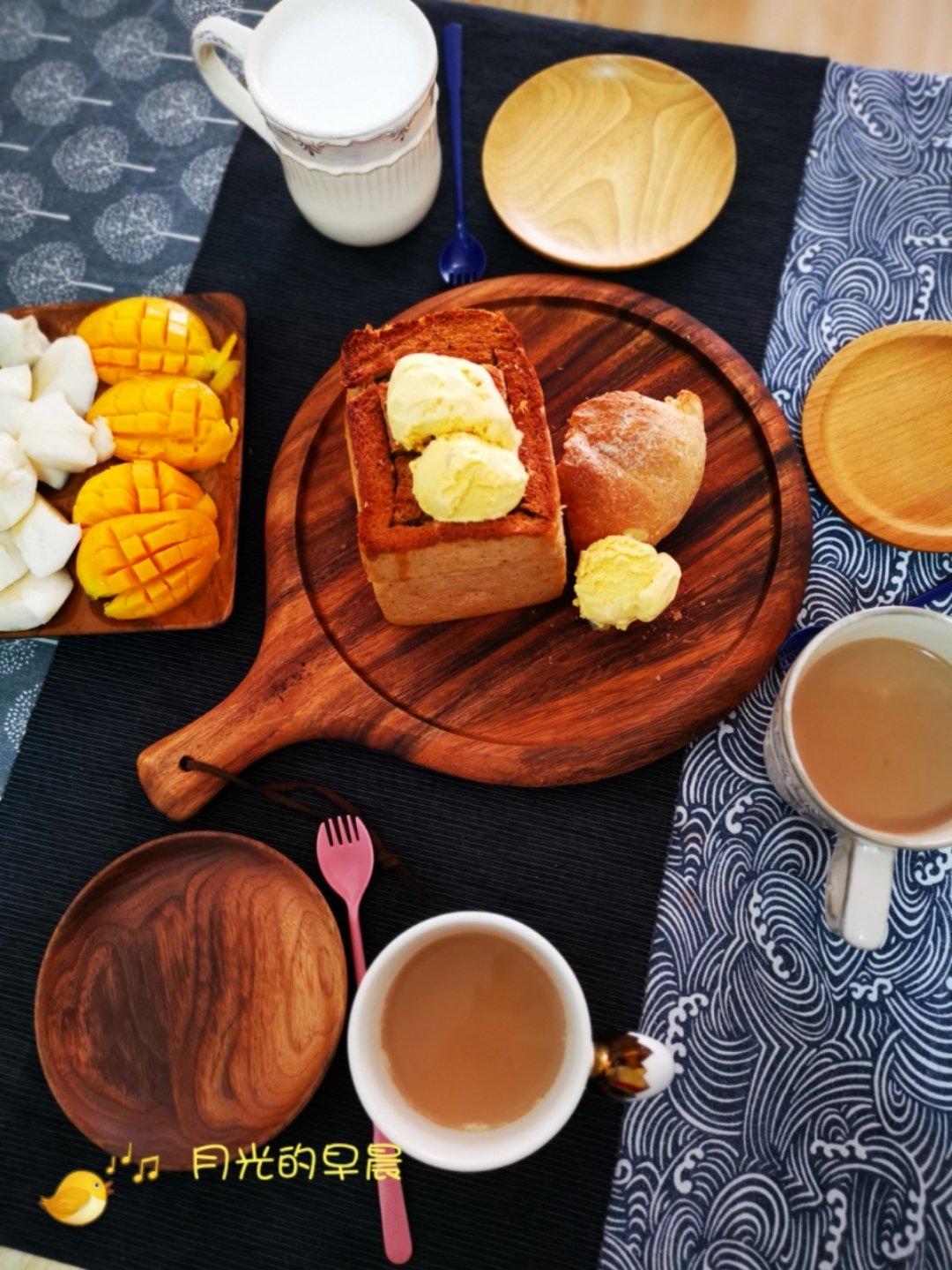 今天从店里带回来的shokupan切一半做个厚多士...