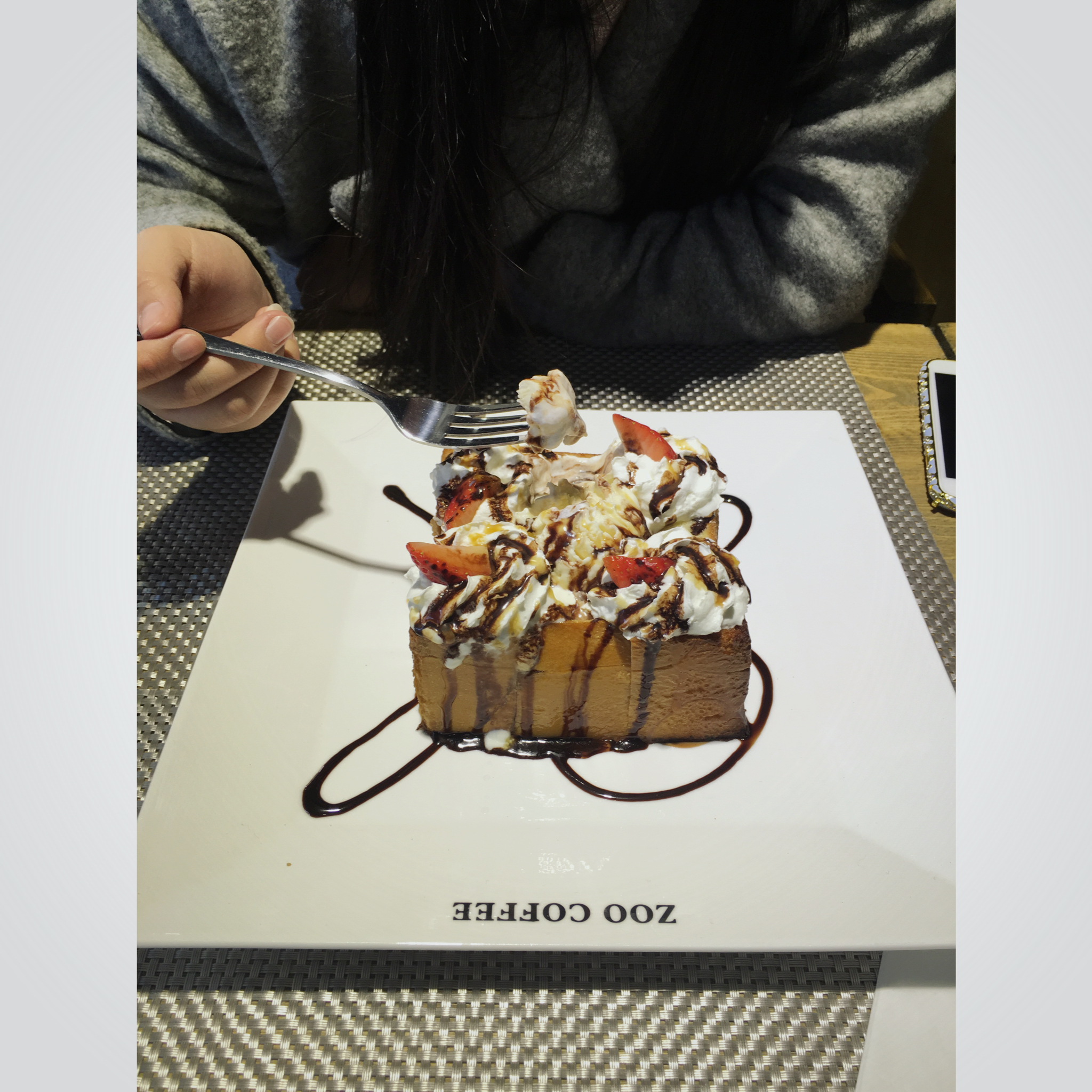 今天和同学一起去了ZOO ,点了冰淇淋蜂蜜厚多士
