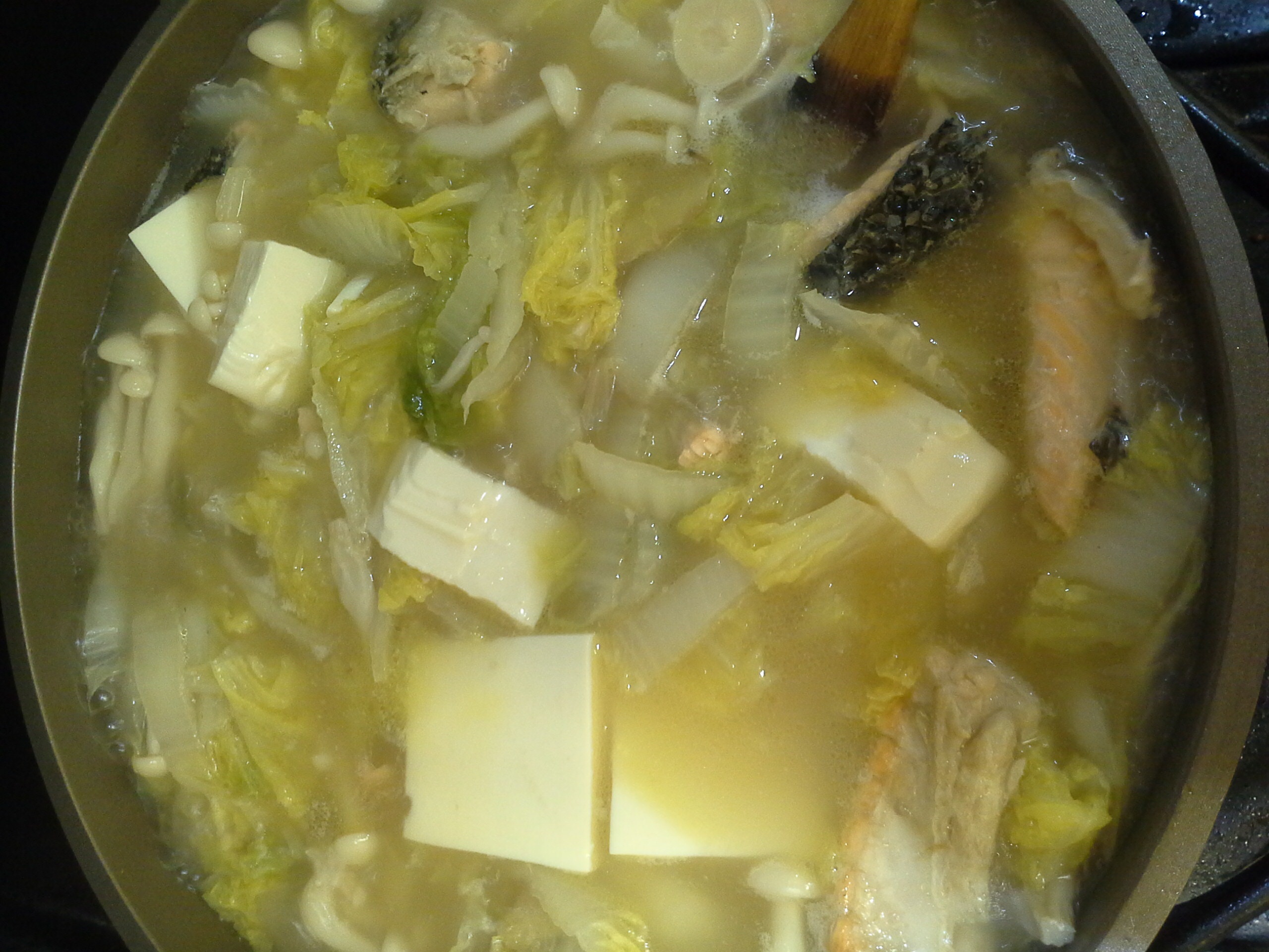 用的三文鱼头, 放了一大颗菜, 和宝宝吃了一天。