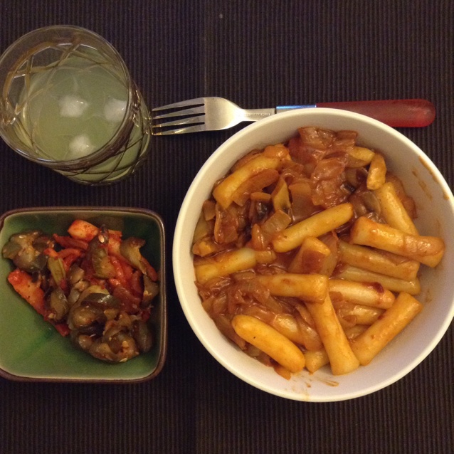 最近疯狂渴望棒子饭。炒年糕+泡菜+vodka.