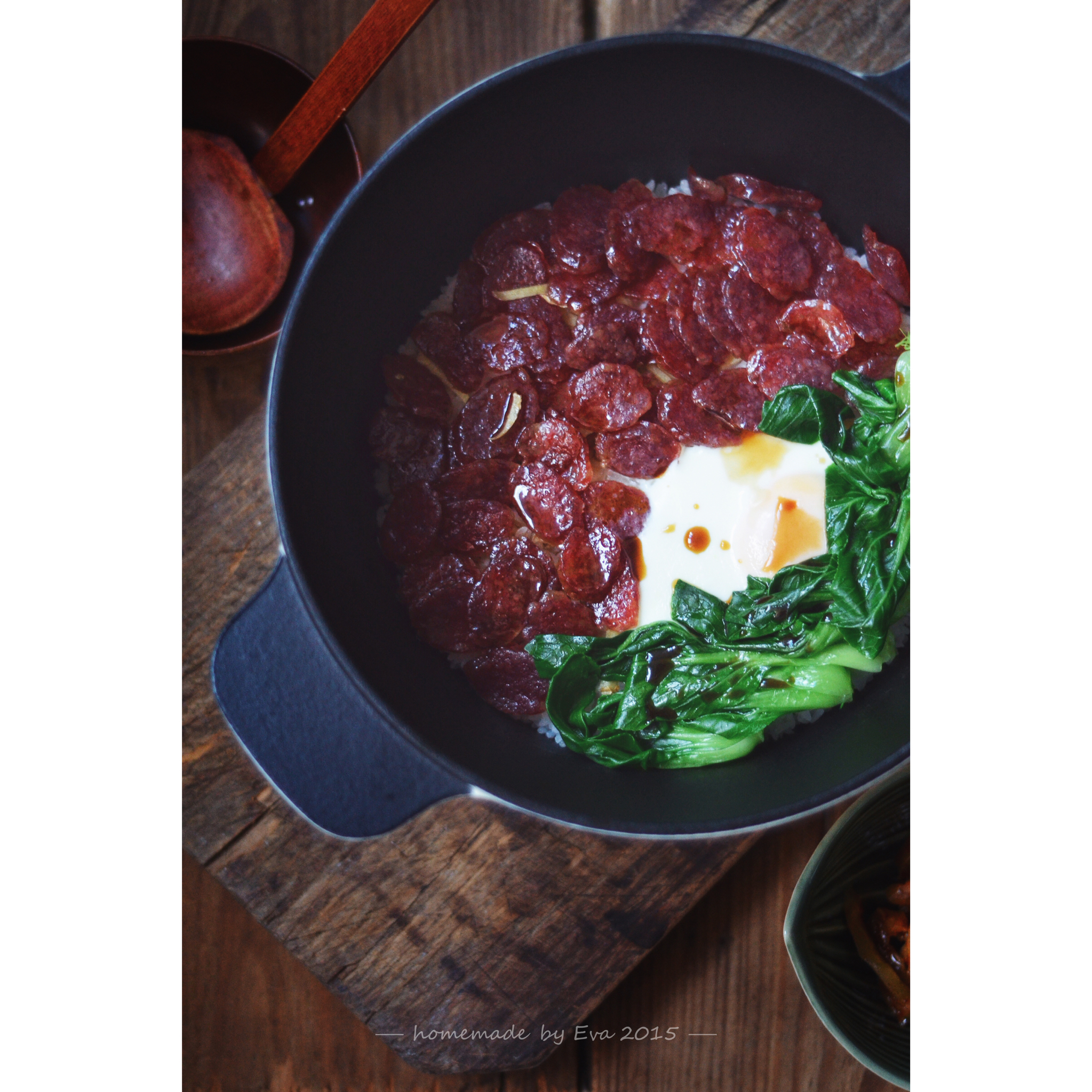 周末用铸铁锅烧的,锅太大显得分量不足😂