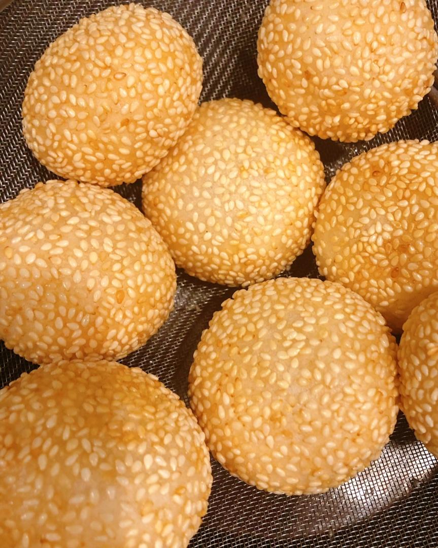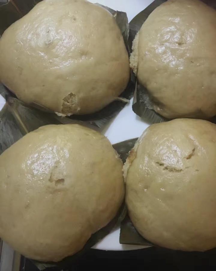糯米粉揉的外皮,包上炒香的馅料,上蒸屉蒸熟...