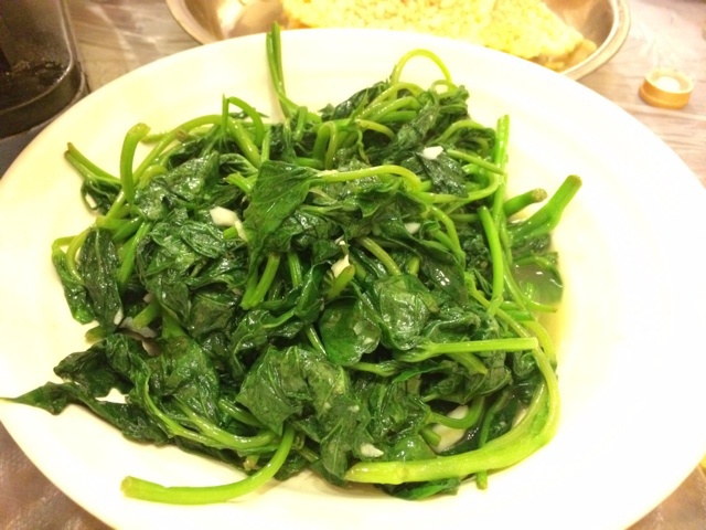 外食。清炒红薯叶。还没先森炒的好吃。
