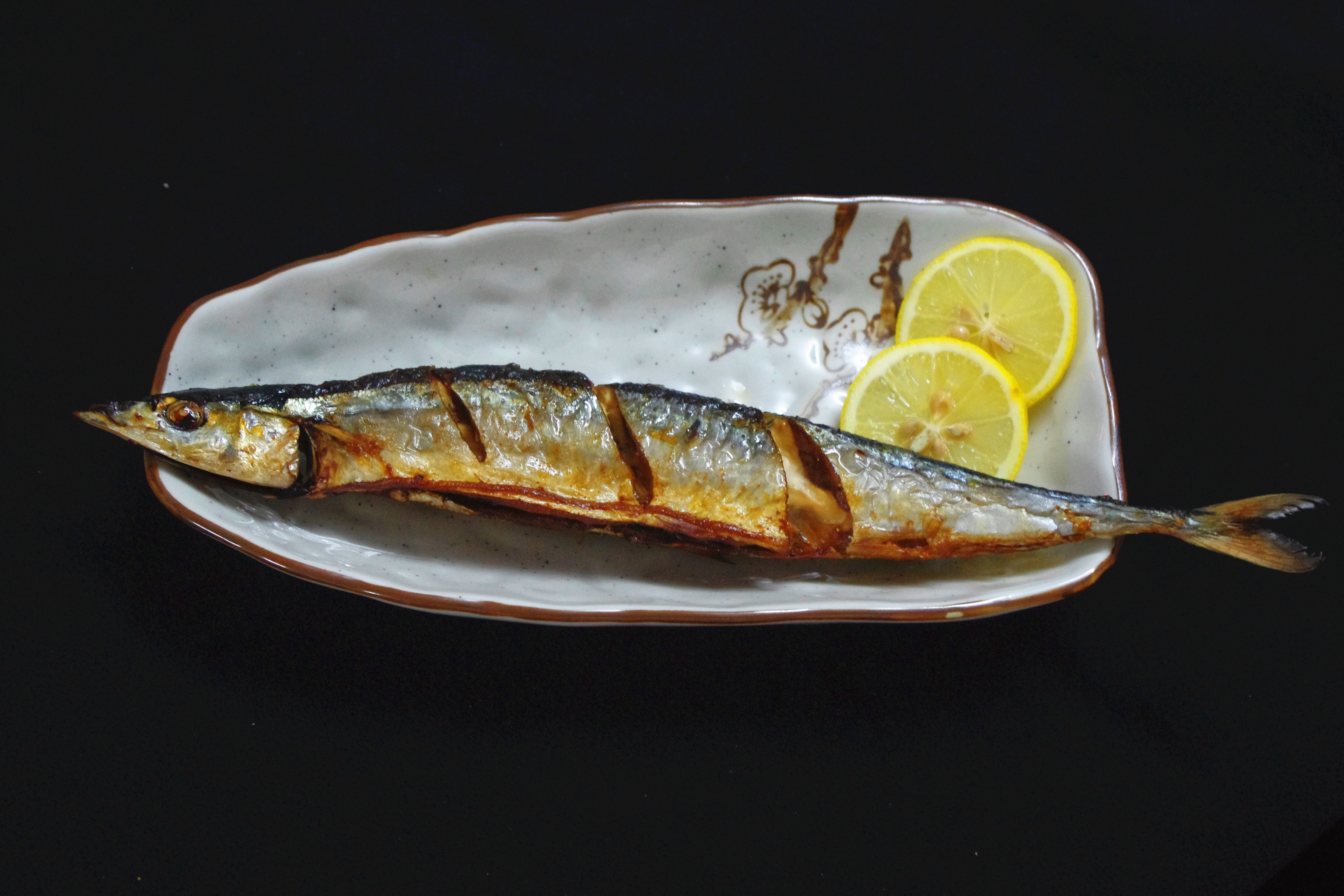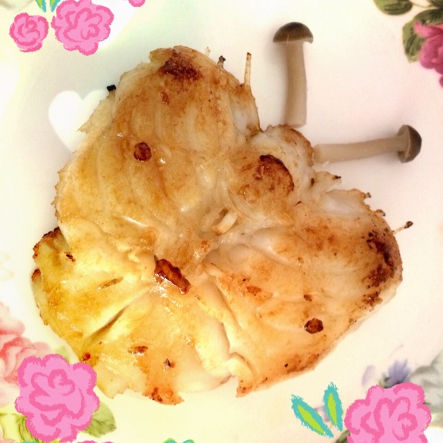 没有那么长的盘子,可怜鱼了~ 很好吃,也别喜欢肚子边缘烤得脆脆的感觉