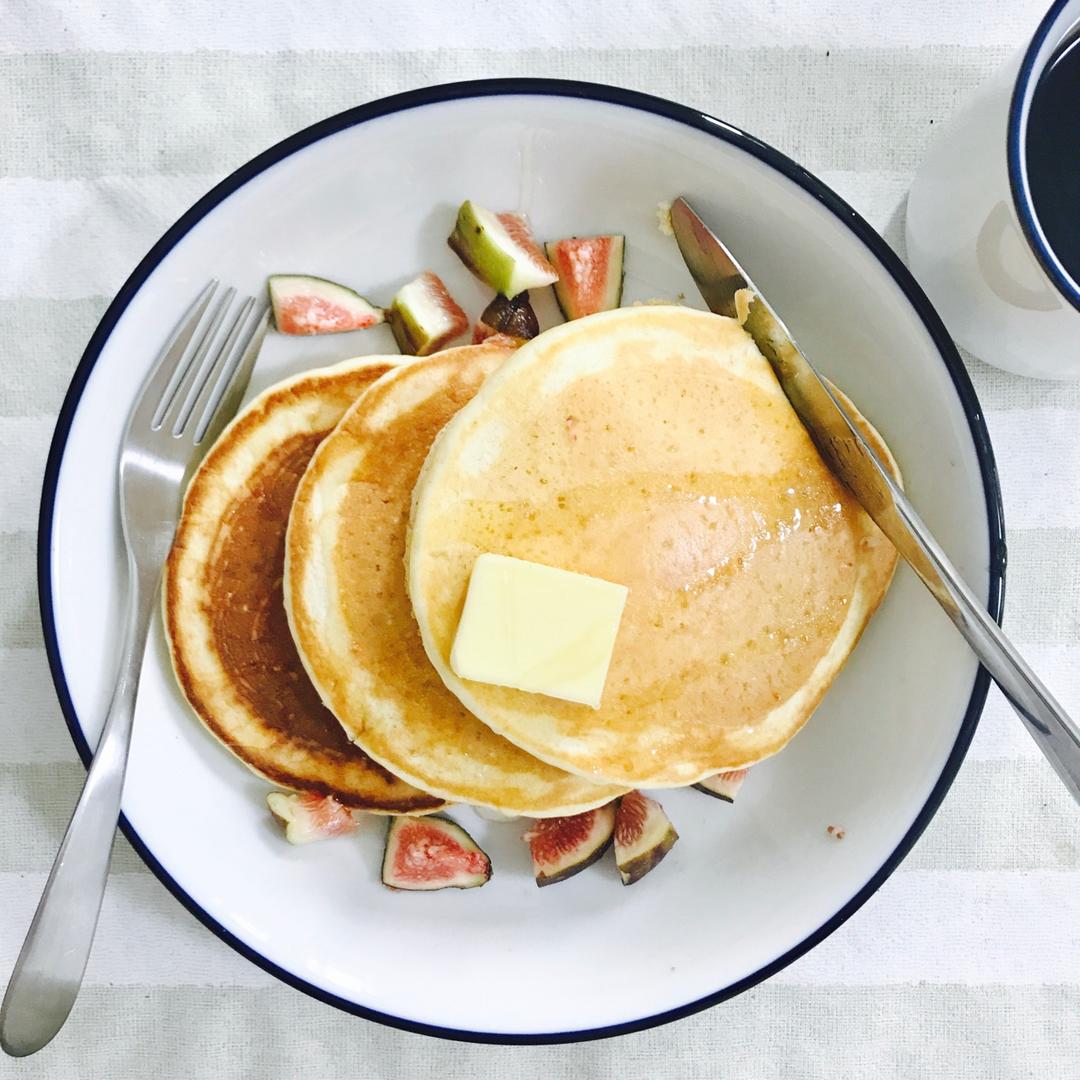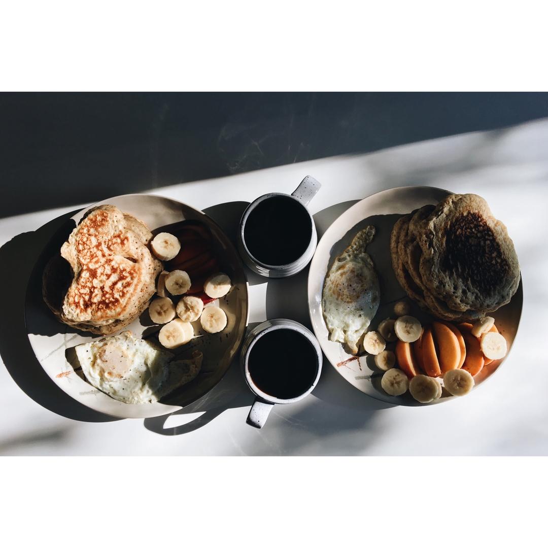 在秋光里吃早餐,惬意🍁🍂☀️老公用天然酵种做的全麦pancake要比餐馆的有口感多了~