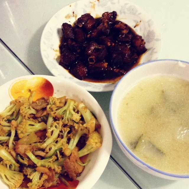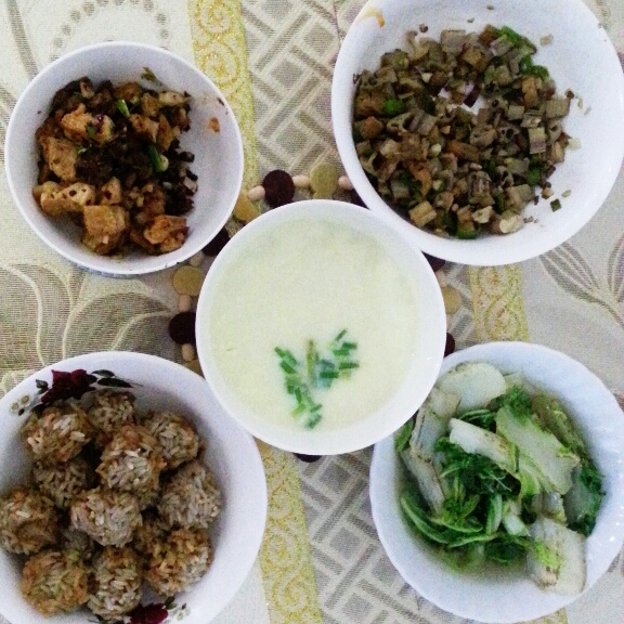 这是今天的晚餐,蒸蛋要放两个蛋就好了,太稀了,藕丁炒的时候油放少了,有点干,但是无论自己炒的...