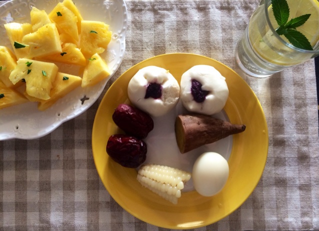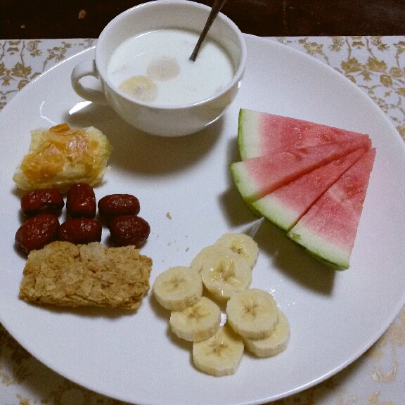 早餐。今天是香蕉牛奶麦片。
