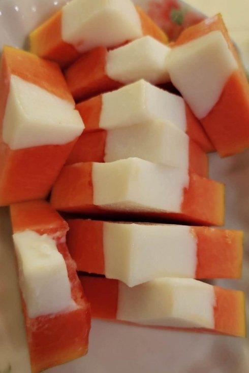 木瓜奶冻,加了椰奶和炼乳,味道不错。