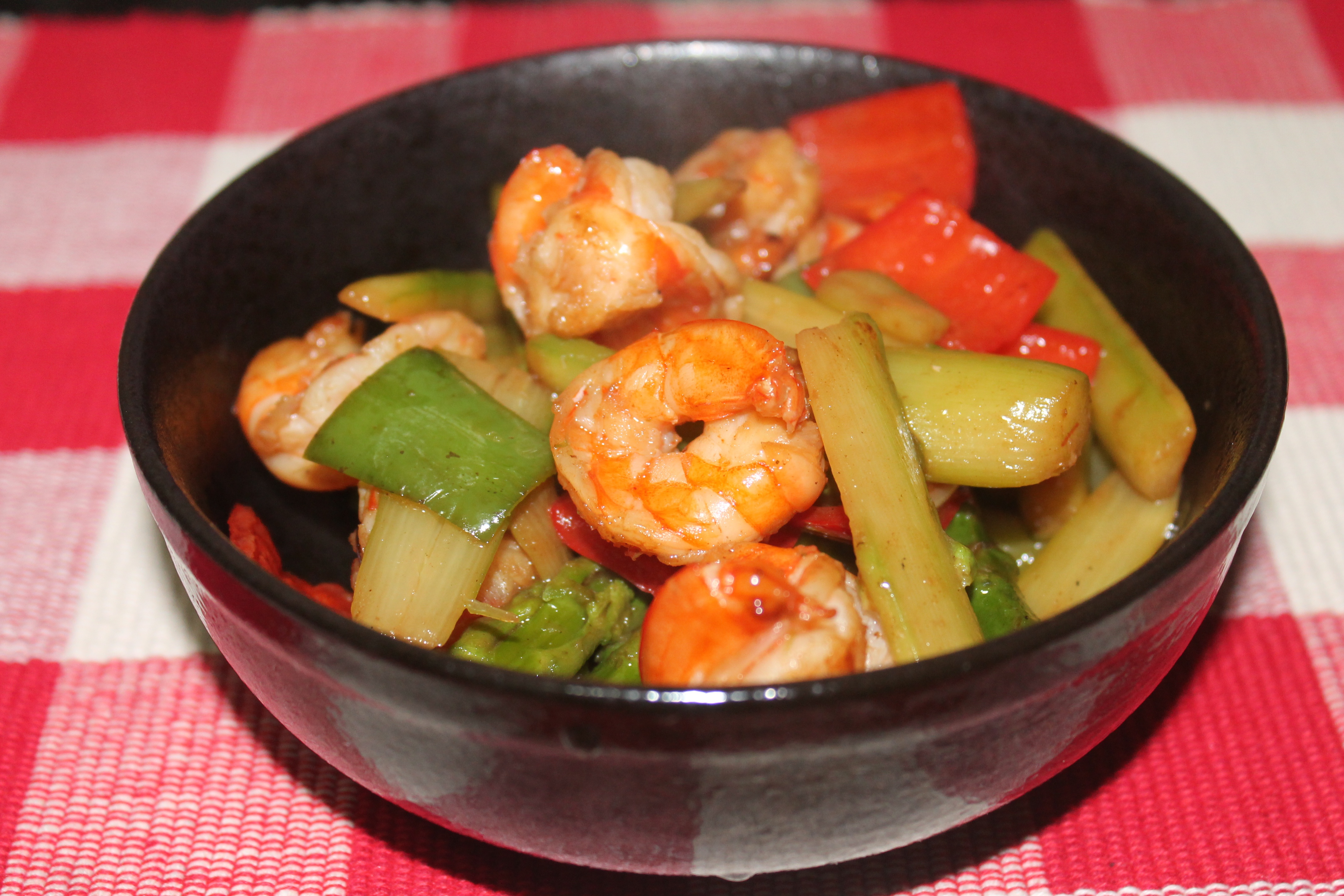 芦笋炒虾球。配潮汕地道的卤味鹅腿。