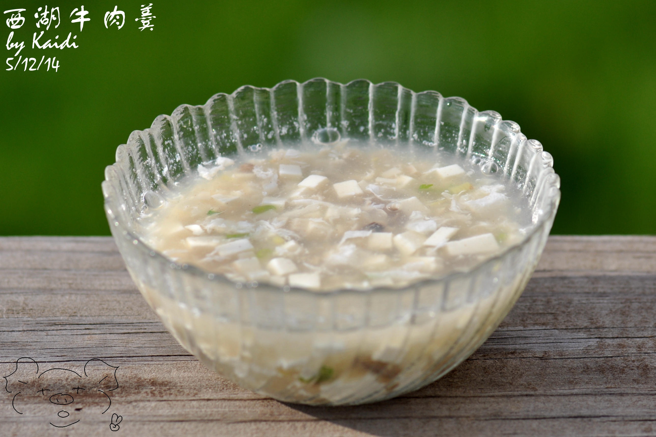 没来得及泡发香菇,放了杏鲍菇丁。两个人都不怎么吃香菜,家里也没有香菜,最后只放了一点点葱。很少做这种汤羹,水淀粉放少了,...