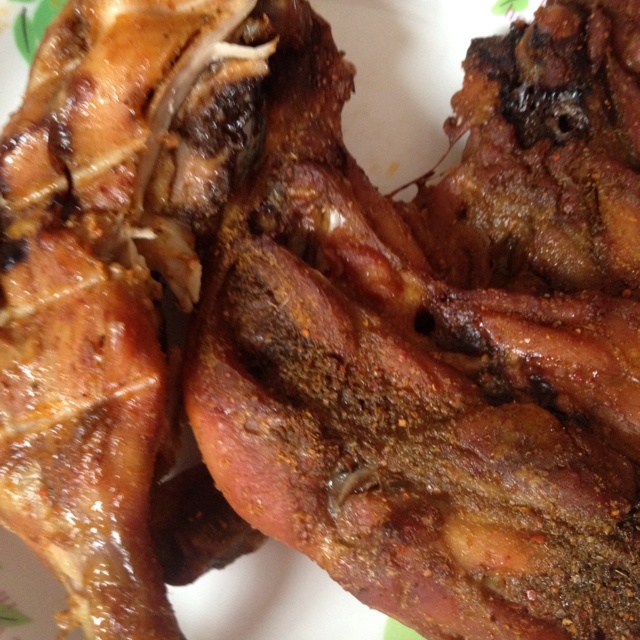 腌制时间有些短,里面不是很入味。不过挺好吃的哈哈,烤的时间长所以焦焦的超好吃