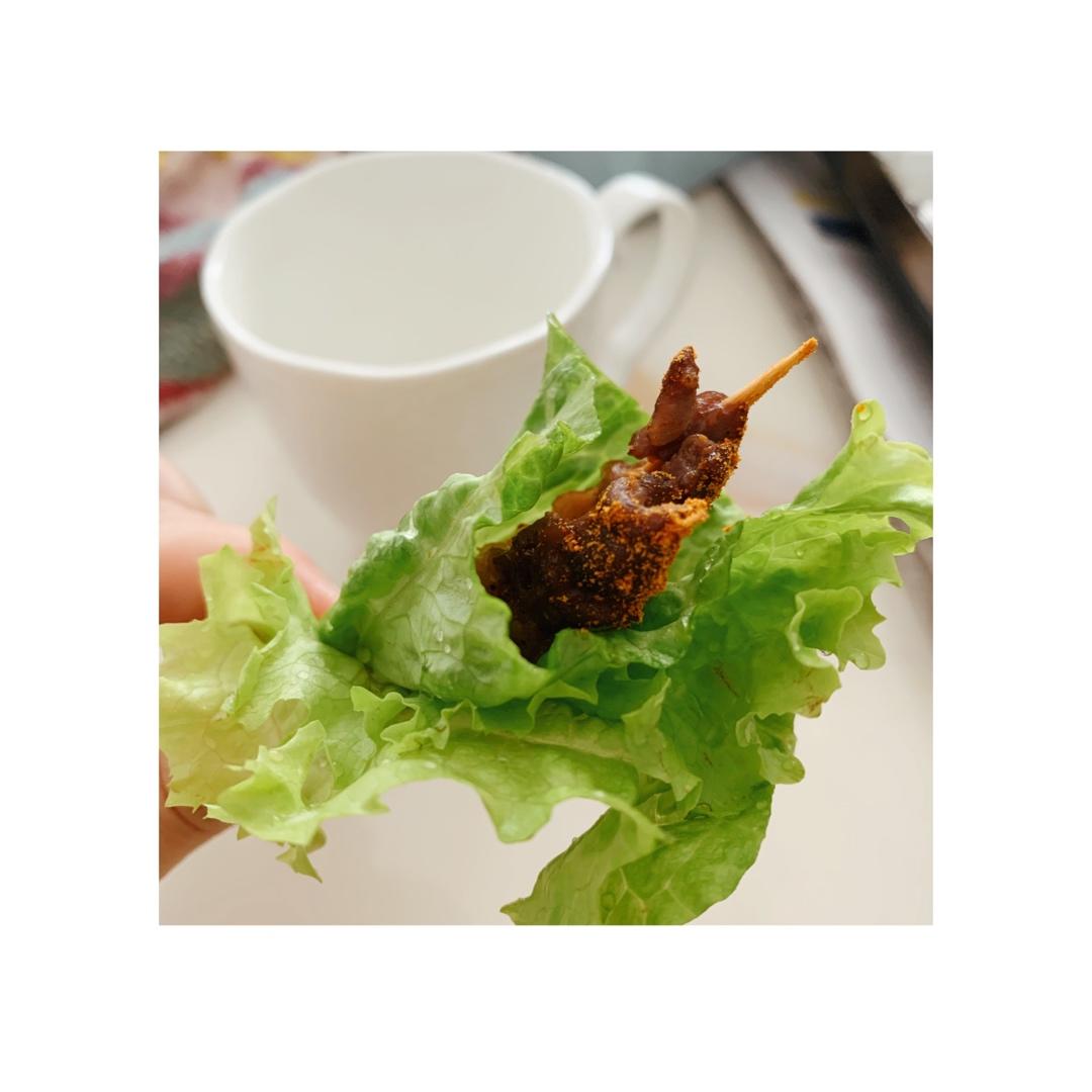 空气炸锅做的烤羊肉穿,简单方便。彩椒土豆丝配半烫面的口袋饼,舒舒服服的一餐。剩下的口袋饼还切条和大白菜做了个炒饼,但是忘...