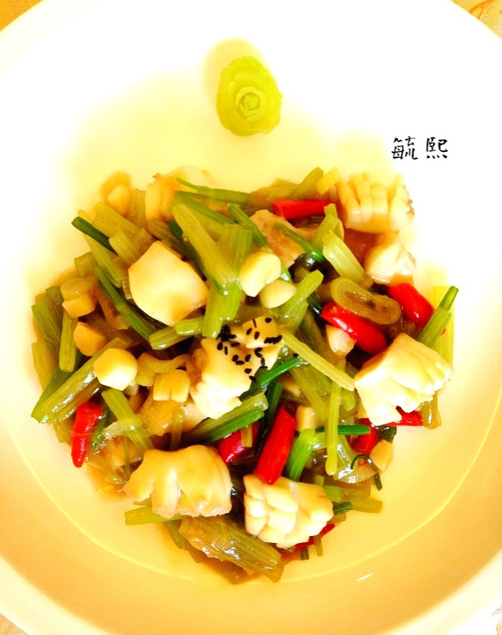 芹菜鱿目片。花刀切的不好