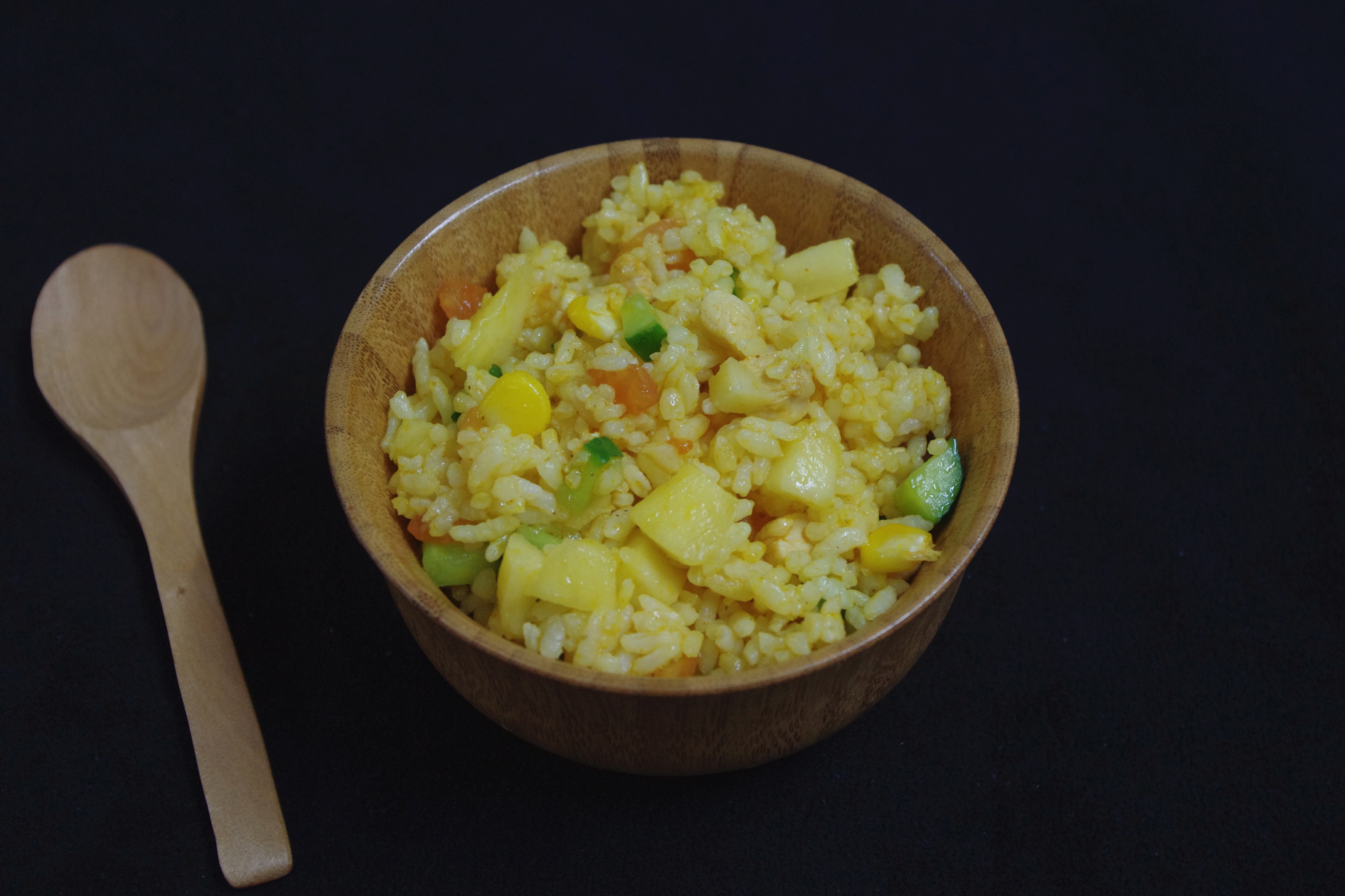 鸡肉,番茄,黄瓜,玉米,芒果~早上饱饱吃一碗,带小子出门~