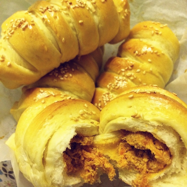 下回争取自己做肉松。感觉方子水少了点。面包机和面的时候加了一点点牛奶又。非常绵软的面包。