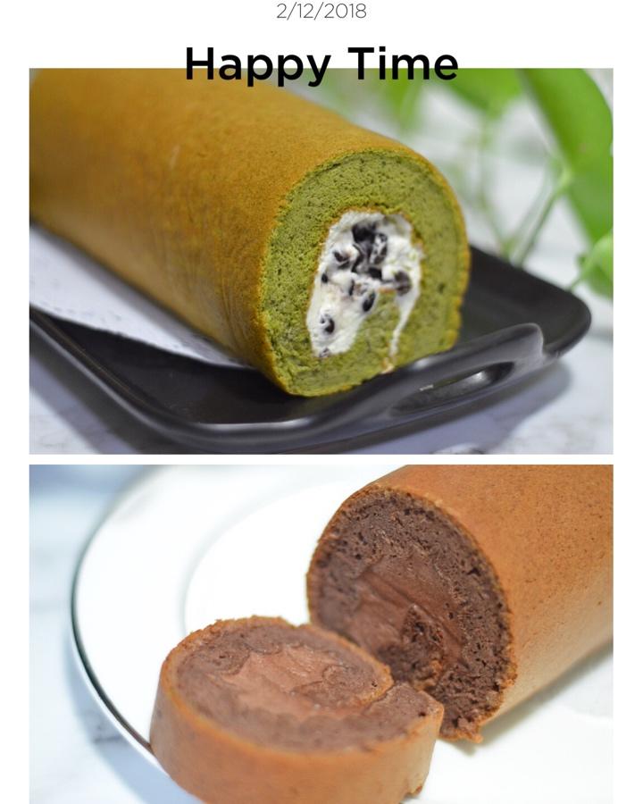 做了浓郁的可可卷和小清新的抹茶蜜豆卷😋😋