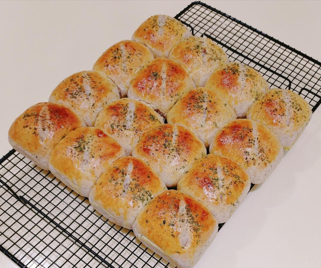 无意中刷到这个方子,喜欢土豆的我马上动手做起来,崇尚低脂健康的饮食,参照方子有所改良:高筋面粉340克,黑全麦面粉50克...