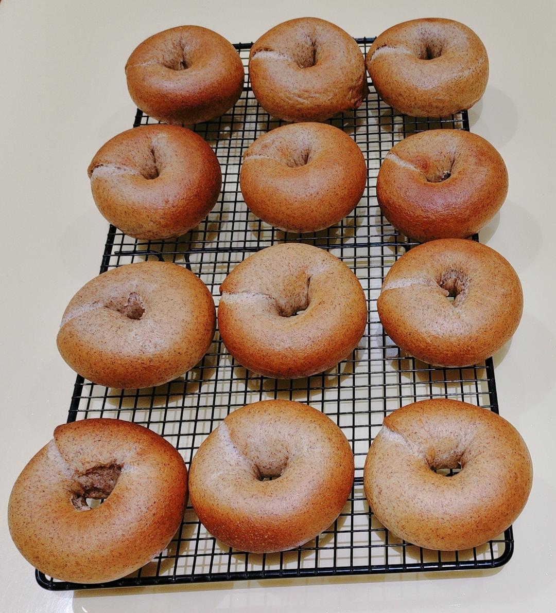 喜欢各种贝果🥯,做了双倍的量,加了黑全麦面粉,风炉模式220度10分钟,后调至200度烤10分钟,上层12分钟后加盖锡纸...