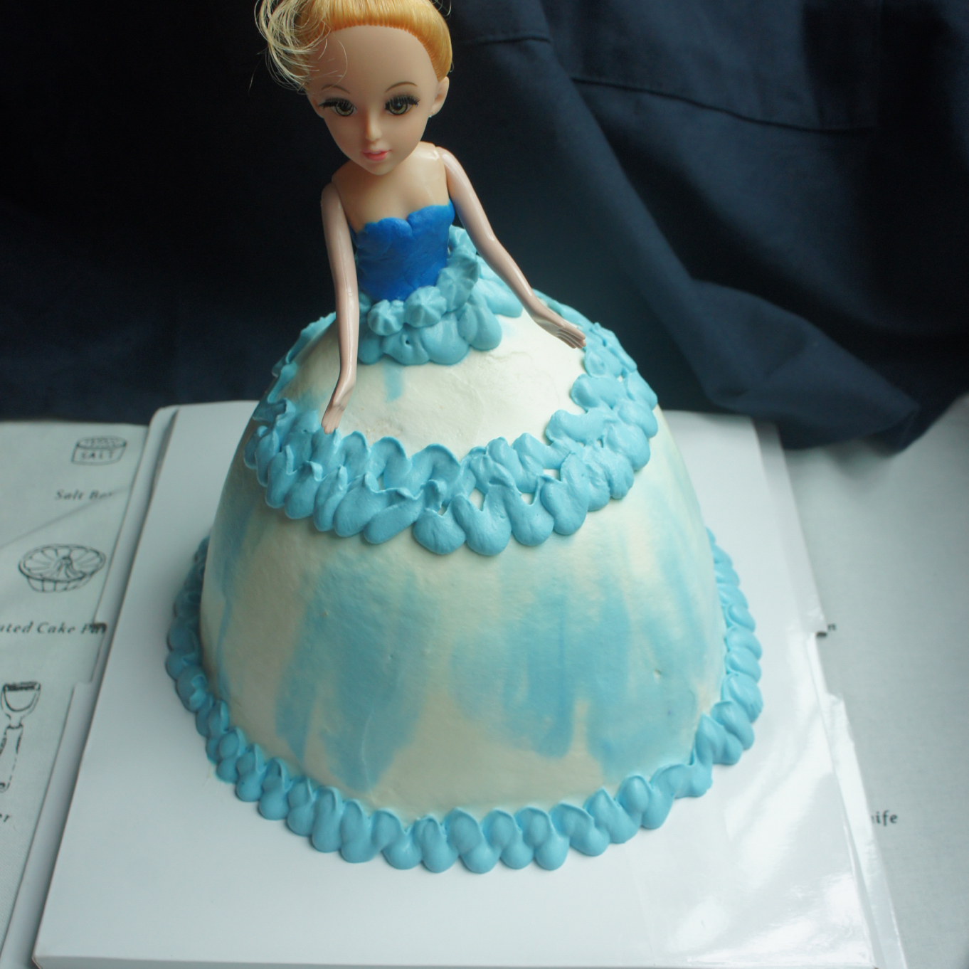 第一次做芭比。懒了没打奶油霜,到后期奶油的状态不对,在腰部就没有处理好!但是自己摸索出抹弧面蛋糕的技巧,嗨...