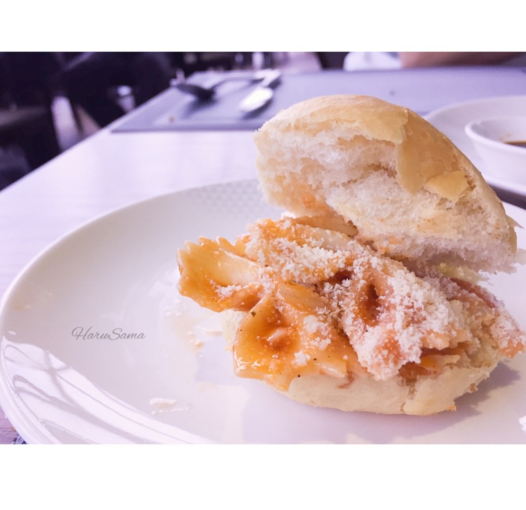 今天去了东方明珠的旋转餐厅!然后里面有意面沙拉和小面包!瞬间想到娘娘的菜谱!