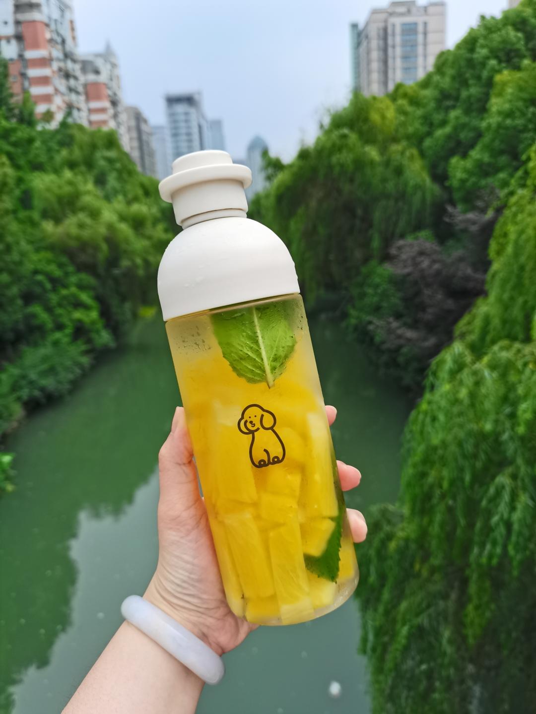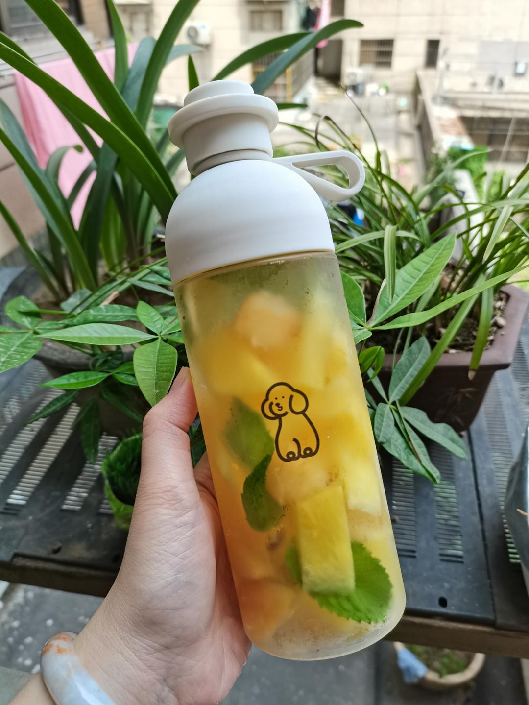 菠萝+桃子+柠檬+薄荷叶,超级小清新的一杯小甜水!