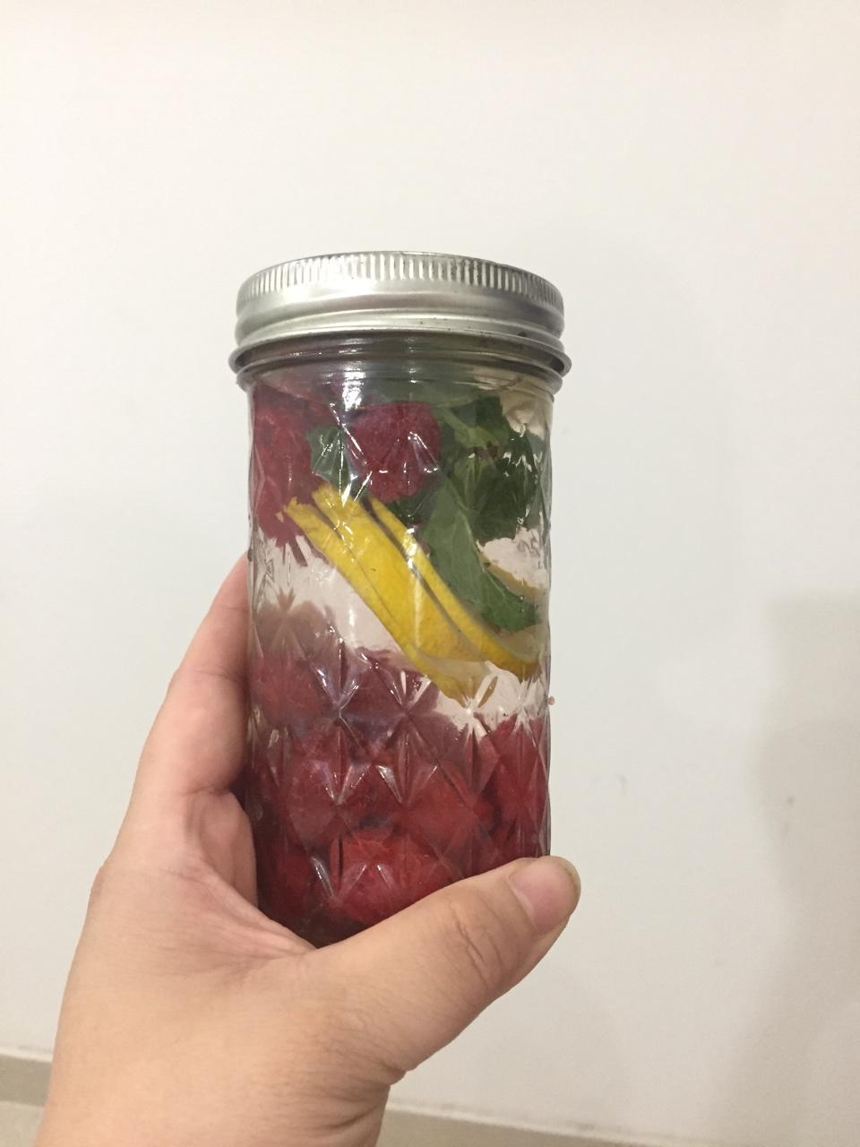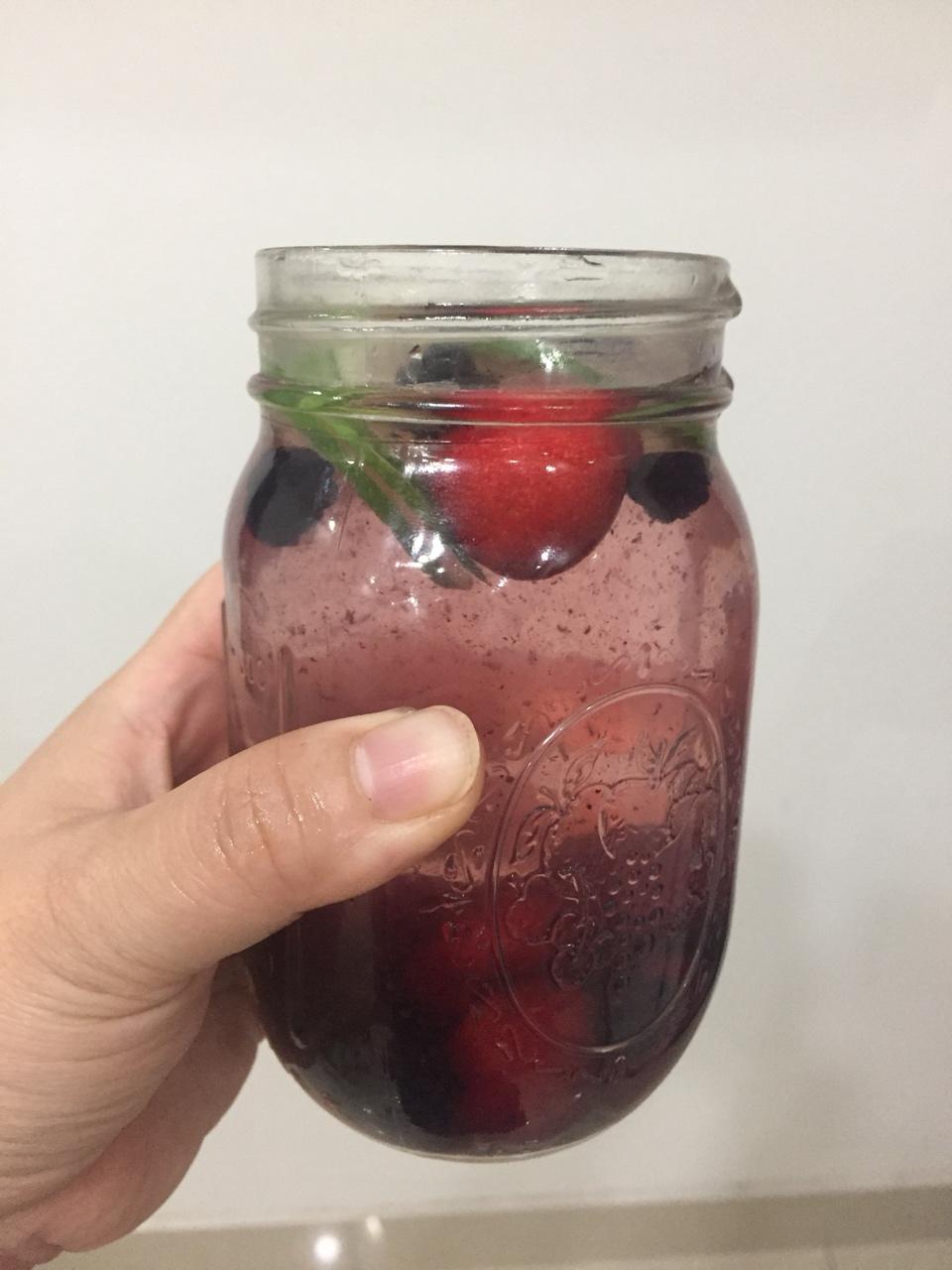 放了黄瓜、薄荷叶、柠檬、蓝莓和葡萄,下次可以换一些香料和水果。