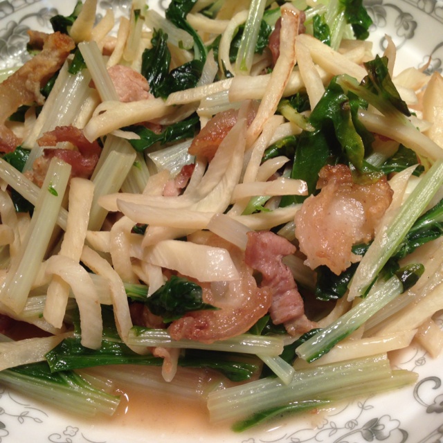 特地拿五花肉熬的猪油,没有熬很焦,吃起来脆脆的,和小白菜跟茭白丝是绝配哦*^0^*
