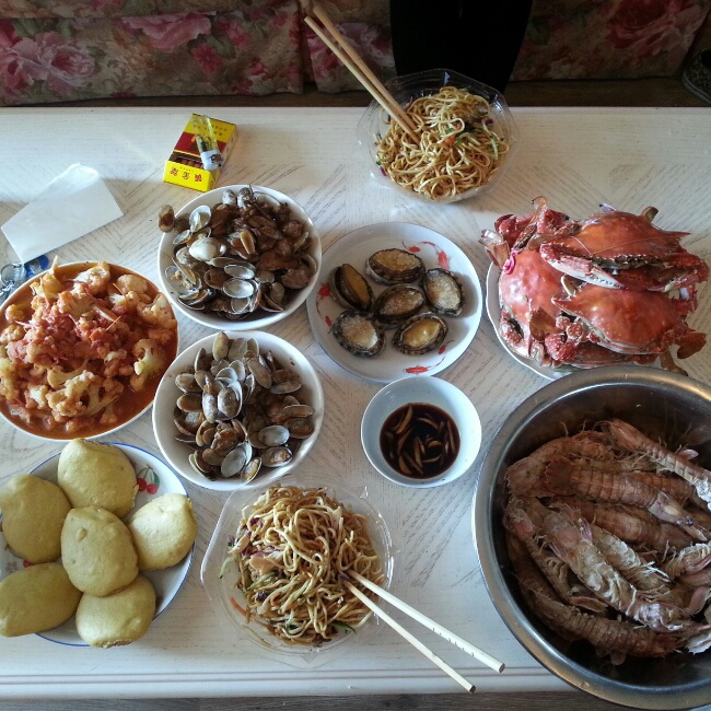 老公做的海鲜餐 还有番茄菜花(小窍门 番茄菜花炒之前先用水过一下 炒出来菜花会更软 更入味...