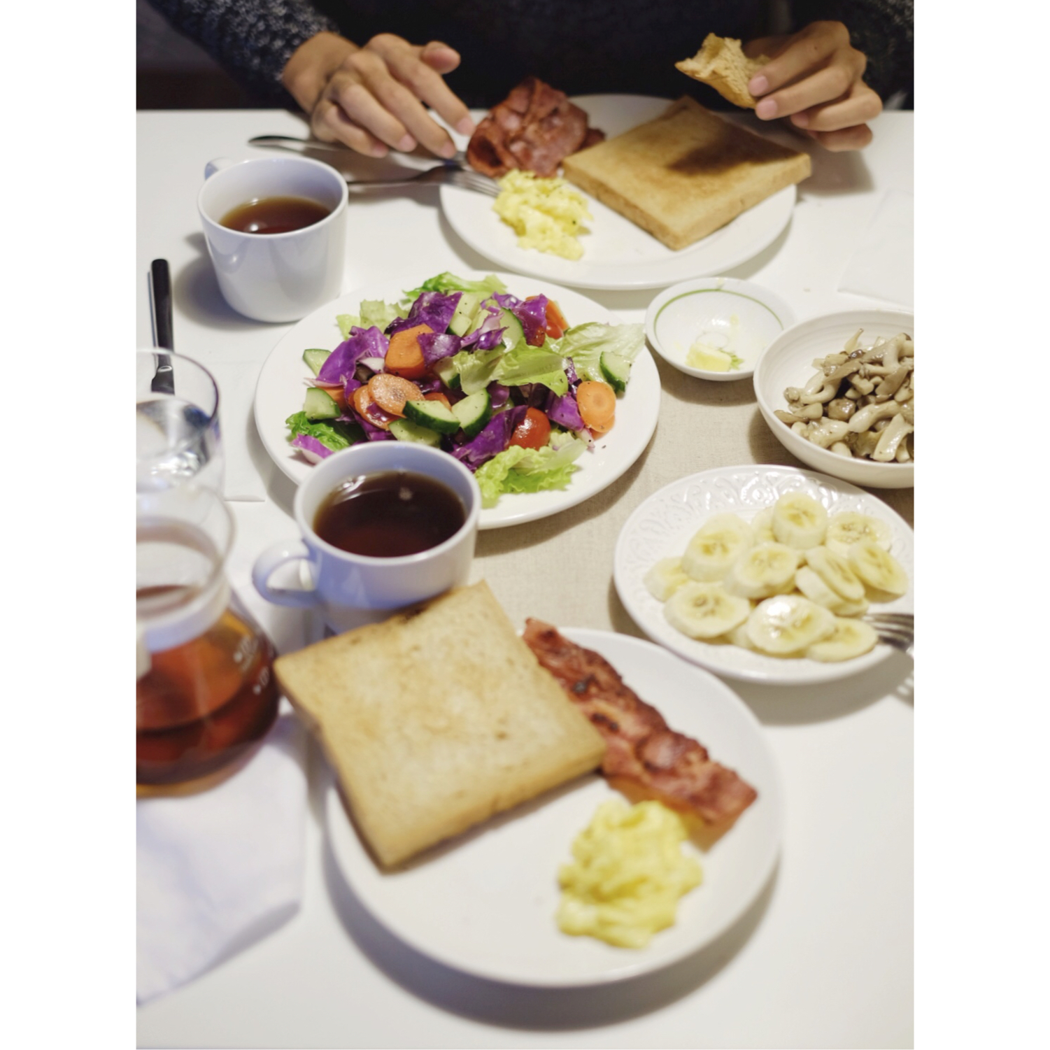 鸽大王最爱吃的早餐是港式/美式,多士炉叮过的脆吐司抹上有盐黄油,港式晨餐的煎蛋…… 吐司,只能用多士炉叮,其他做法他一概不吃T_T 说是什么最简单朴实的华丽美味。