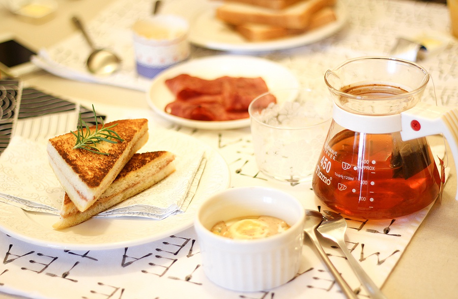 鸽大王最爱吃的早餐是港式/美式,多士炉叮过的脆吐司抹上有盐黄油,港式晨餐的煎蛋…… 吐司,只能用多士炉叮,其他做法他一概不吃T_T 说是什么最简单朴实的华丽美味。