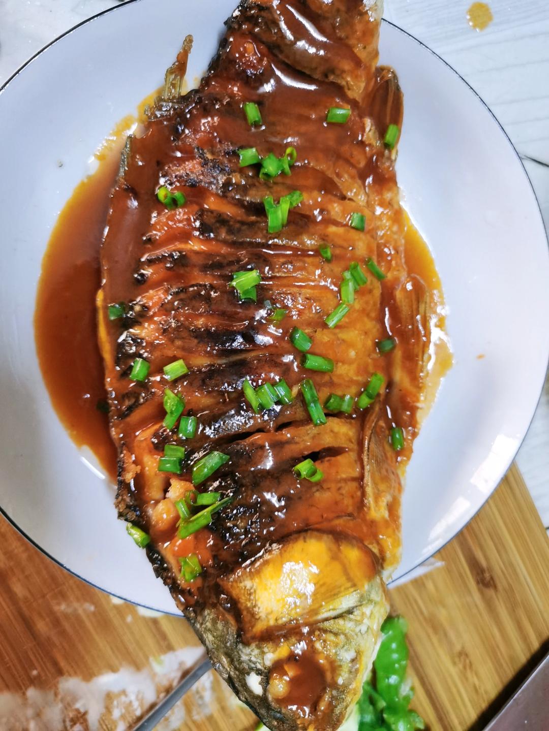 两斤的草鱼,一个手有点提不动,做完累死了,味道很好,下次换个小鱼🐟