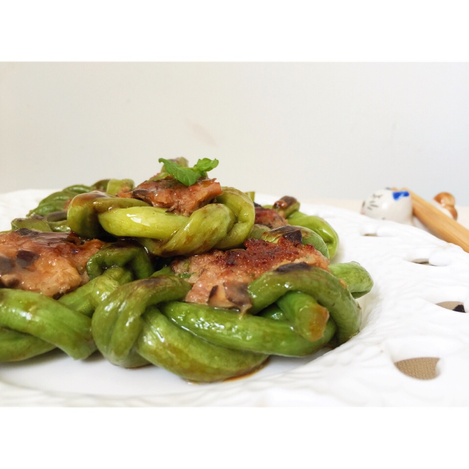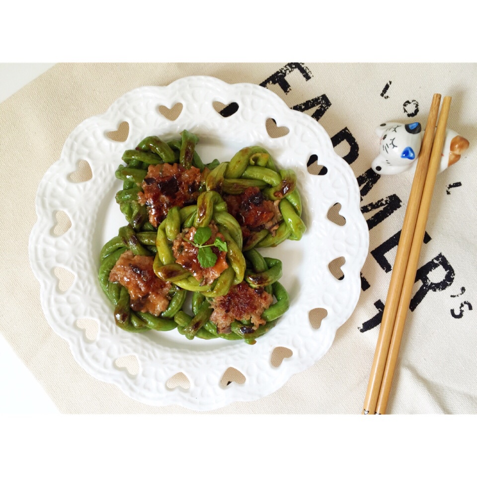 冰箱里松下的几根豆角,就没法挑了。不够细,凑合啦。编的功夫,不可小视,我终究不是一个心灵手巧的人哪!