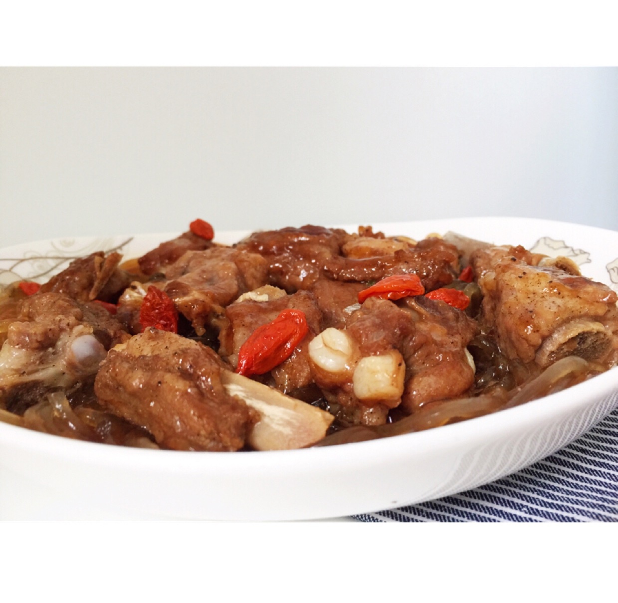 第一次不用任何酱料蒸排骨,原来也可以这么鲜嫩美味的。放的红薯粉条,吸饱了汤汁,吃起来QQ弹。