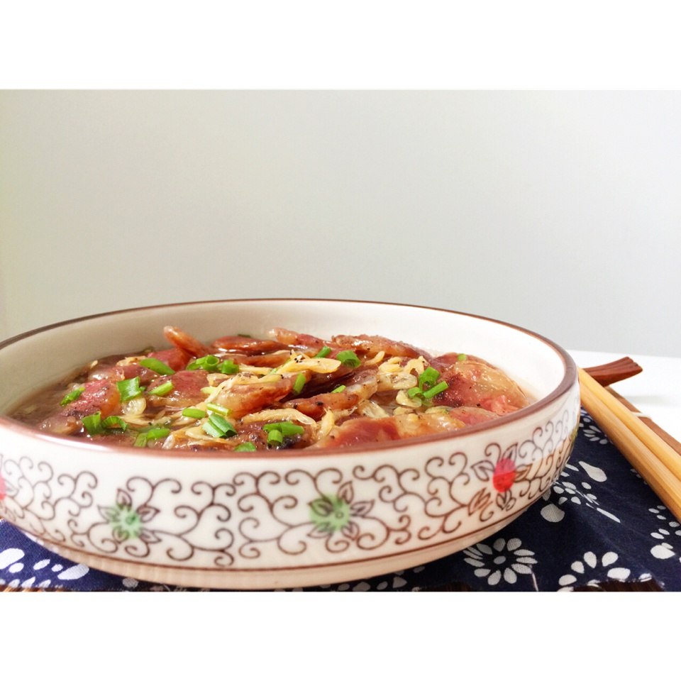 我发誓底下一定有冬瓜的,可惜时间长了几乎变成了水。妈妈牌自制咸肉,自作主张淋了点生抽,撒了点胡椒粉。