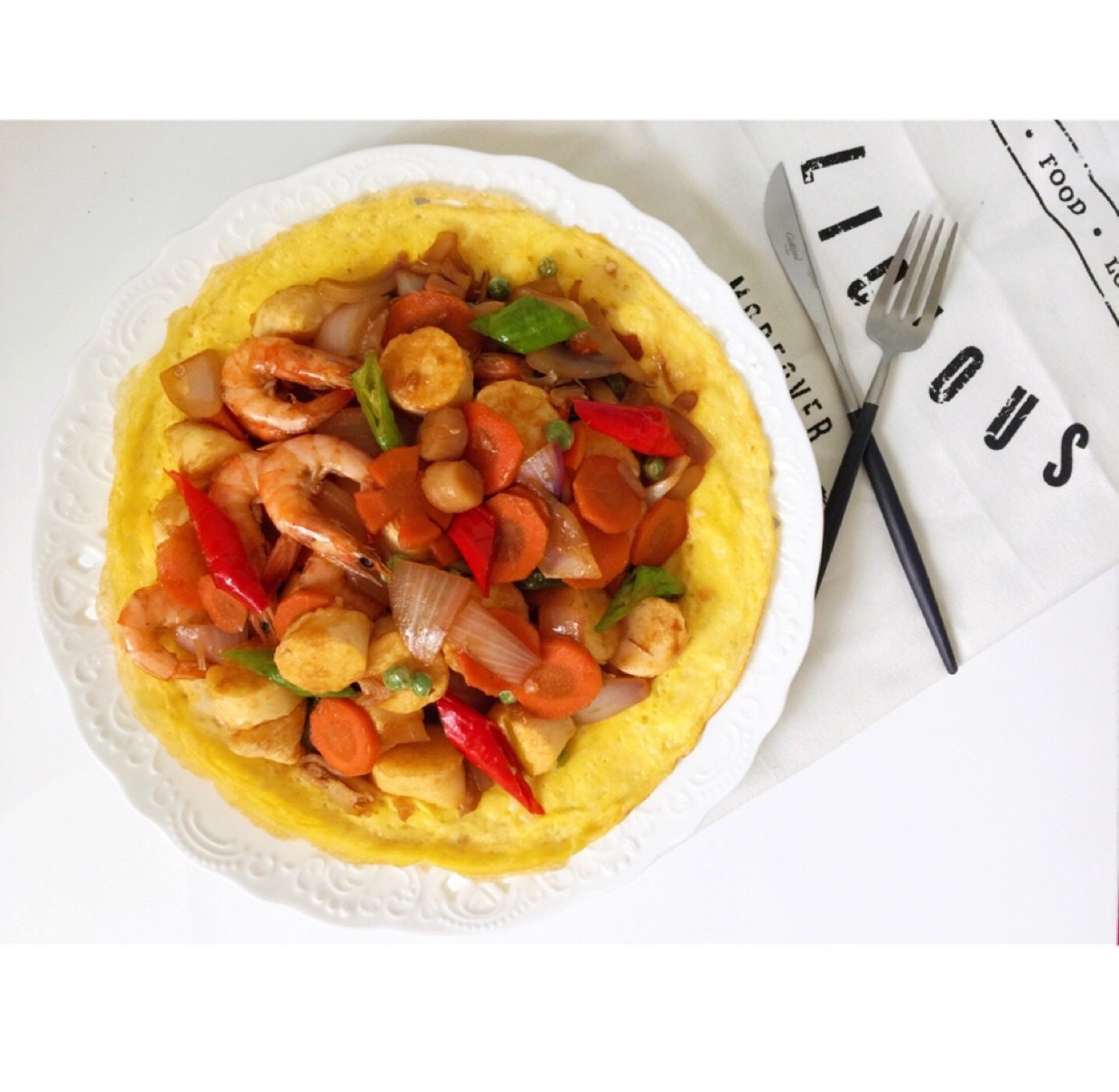 鲜虾,干贝,鱼干,洋葱,胡萝卜,青豆,玉子豆腐,草鸡蛋,吼吼~请叫我hao~