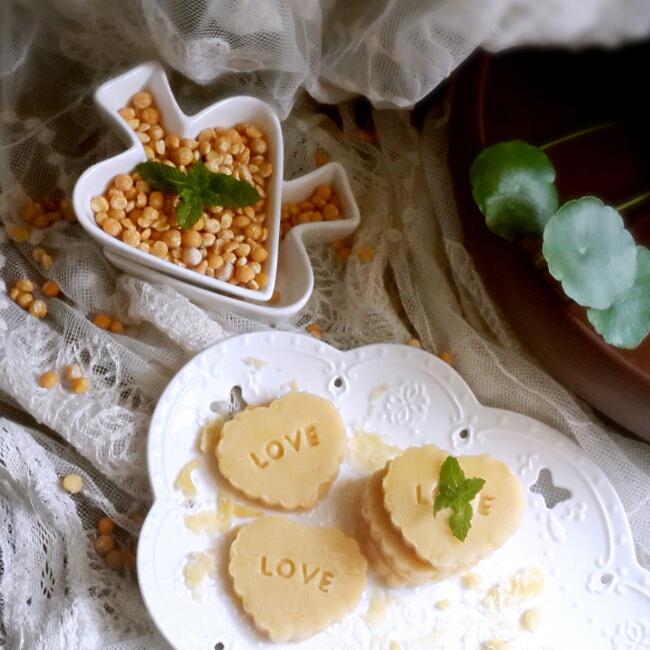 昨天做蛋黄酥用的是豌豆馅,多余了一些,但有点干,就加了牛奶重新翻炒一遍,盛在容器里压实,冷藏...