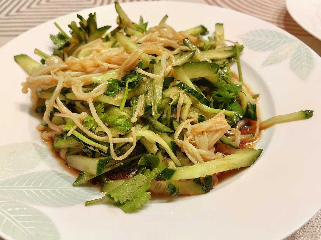 金针菇这样做很好吃~出锅前撒了点香菜段稍微翻炒,感觉味道很清新~