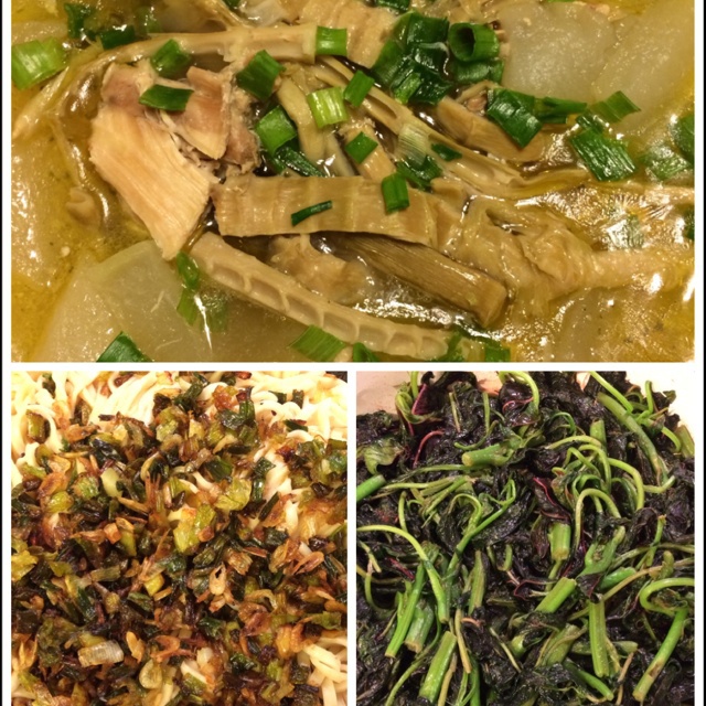东瓜扁尖鸡块汤,葱油拌面➕苋菜,好吃