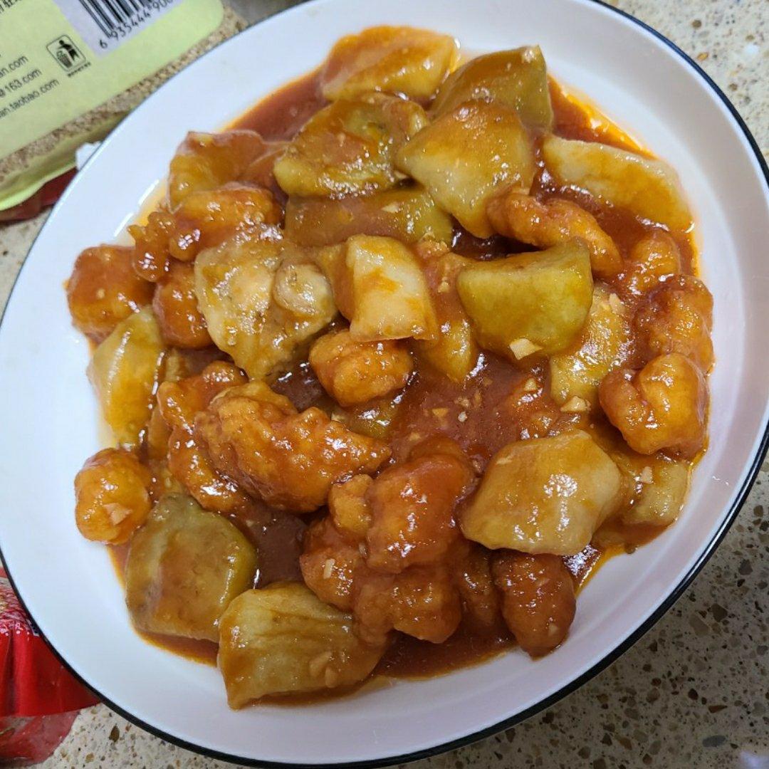 糖醋茄子~里面放了点鸡米花意外的挺搭~