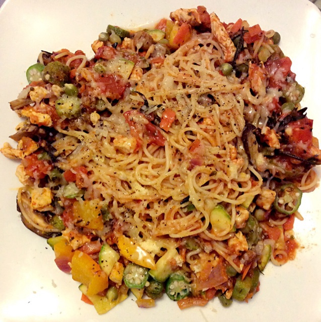 各种蔬菜:番茄 洋葱 西葫芦 豌豆 秋葵 彩椒 蘑菇 香菇 加上火鸡