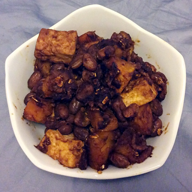 颜色黑暗味道有种梅干菜的感觉;做了虾米南瓜豆腐 加了豆子