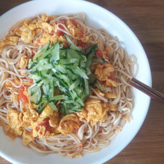 番茄鸡蛋焖面配醋腌青瓜丝